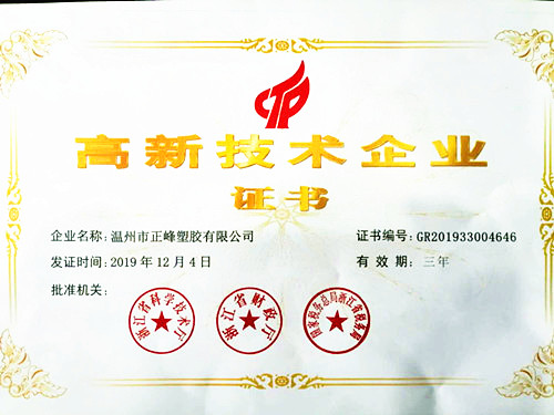 近日,正峰塑膠順利通過“高新技術(shù)企業(yè)”復(fù)評認定,對提升公司科技水平,增強綜合實力,打造專業(yè)優(yōu)勢,提高行業(yè)地位,樹立品牌形象具有積極意義。