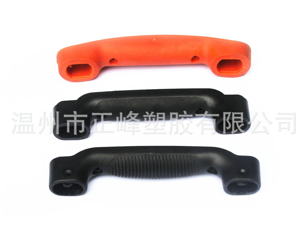 最常見(jiàn)TPE與PP,ABS這兩種塑料包膠。通常箱包手柄是采用PP或ABS塑料的骨架,在與手外表接觸的位置再包覆一層TPE軟膠材料,可以增強(qiáng)手柄的觸感,提升手柄的握持性及舒適性,也可以防滑。市場(chǎng)上有些箱包提手是采用TPE做手柄,將PP材質(zhì)纖維織帶包在中間。